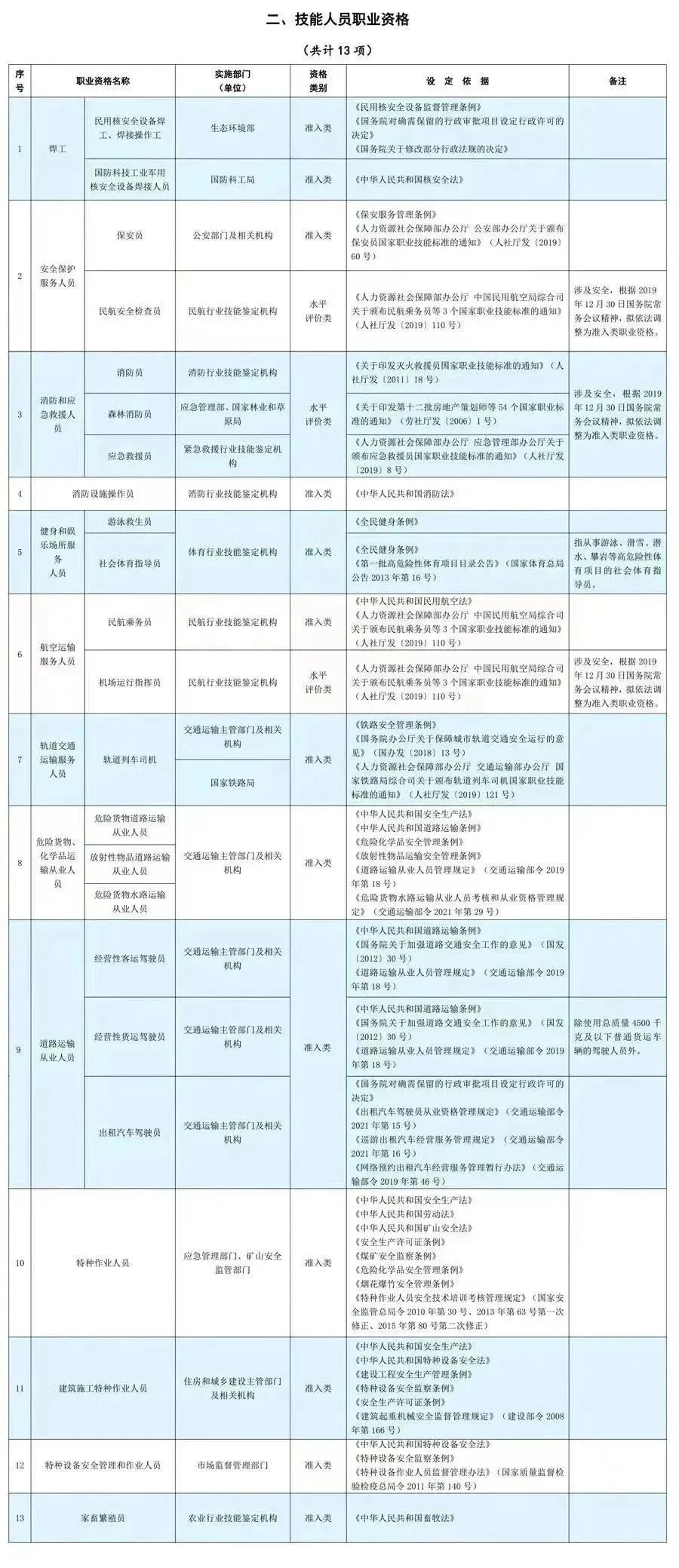 1. 职业资格评价按照人社部公布的现行《国家职业资格目录》实施。
