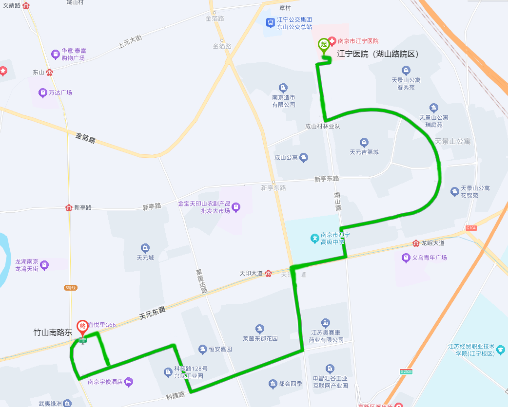 江宁医院(湖山路院区)首末班时间为6:00-18:00,竹山南路东首末班时间为6:30-18:30。运营初期配置高峰时段15分钟/班,平峰时段30-40分钟/班的发车频率。后续将根据客流数据和市民需求持续优化运营方案。