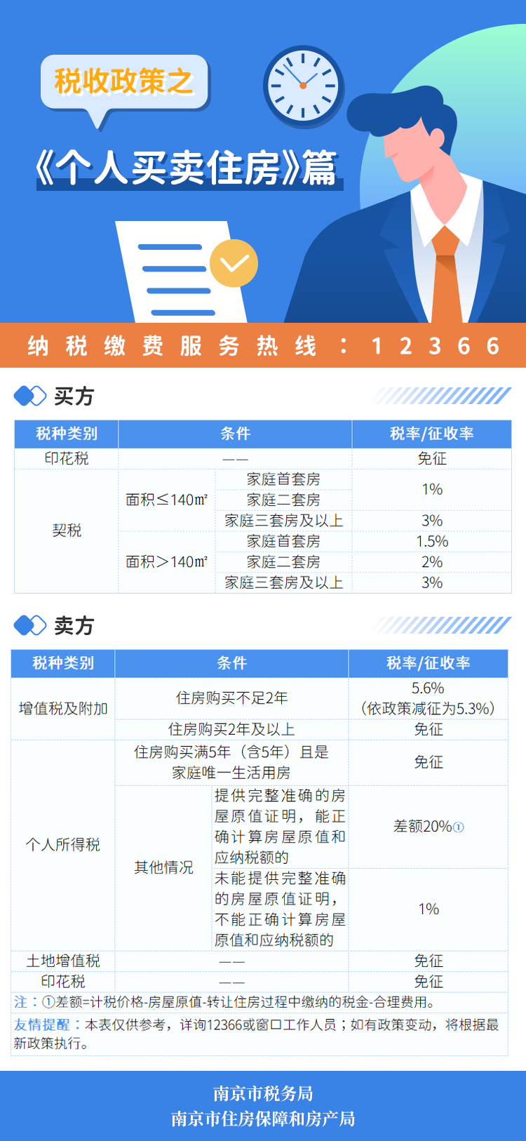 住房交易税收新政出台后,目前买卖房屋该缴哪些税费?税率是多少?又是如何计算的?最新税费政策图表来了。