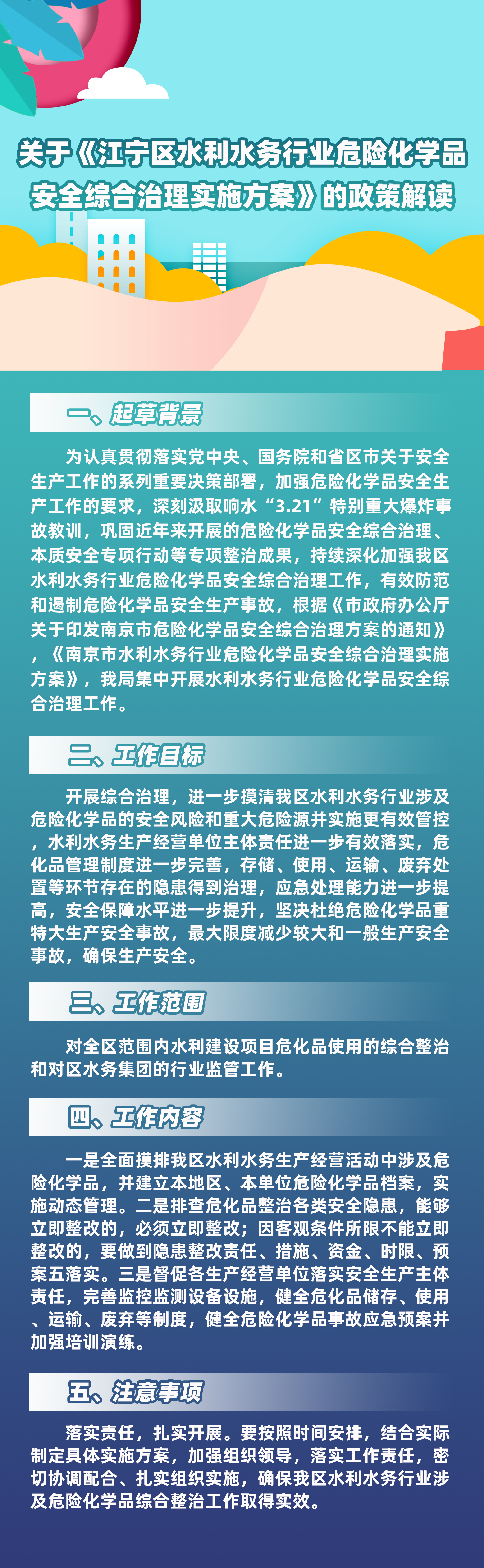 信息名称: | 关于《江宁区水利水务行业危险化学品安全综合治理实施方案》的政策解读 | ||