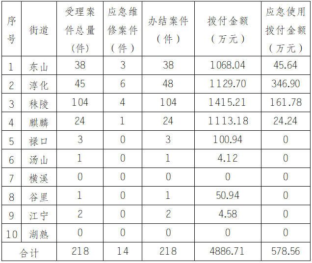 2023年我区维修资金使用案件中,一般程序使用218件,拨付资金4886.71万元,应急程序使用14件,拨付资金578.56万元;应急程序使用项目审核数量和金额分别占全年的6.42%、11.84%。