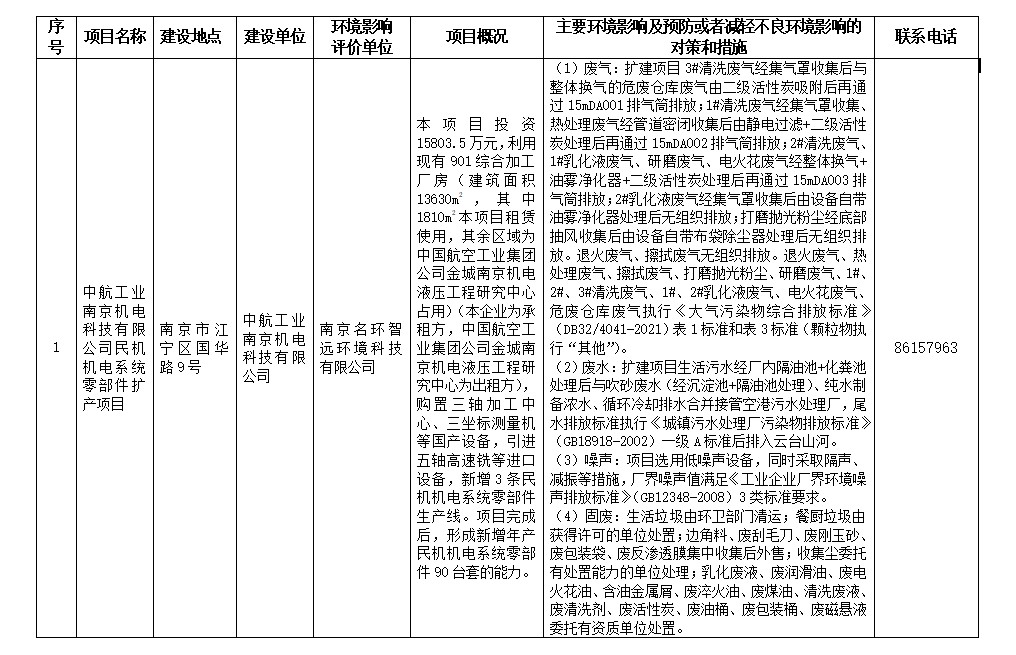 信息名称: | 江宁开发区政务服务中心关于中航工业南京机电科技有限公司民机机电系统零部件扩产项目环境影响评价文件拟进行审查公示 | ||