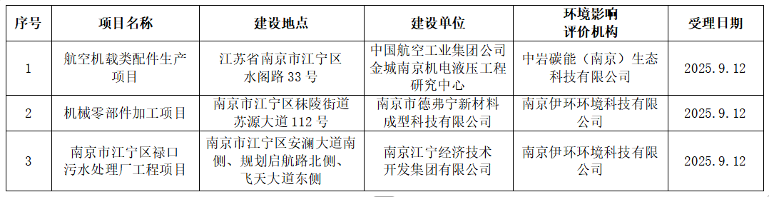 信息名称: | 江宁开发区政务服务中心关于2025年9月12日建设项目环境影响评价文件受理情况的公示 | ||