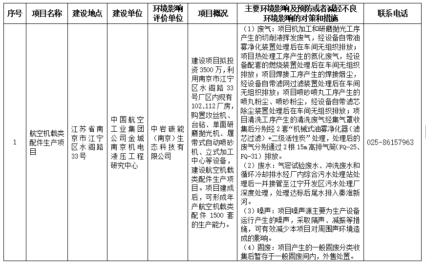 信息名称: | 江宁开发区政务服务中心关于中国航空工业集团公司金城南京机电液压工程研究中心航空机载类配件生产项目环境影响评价文件拟进行审查公示 | ||