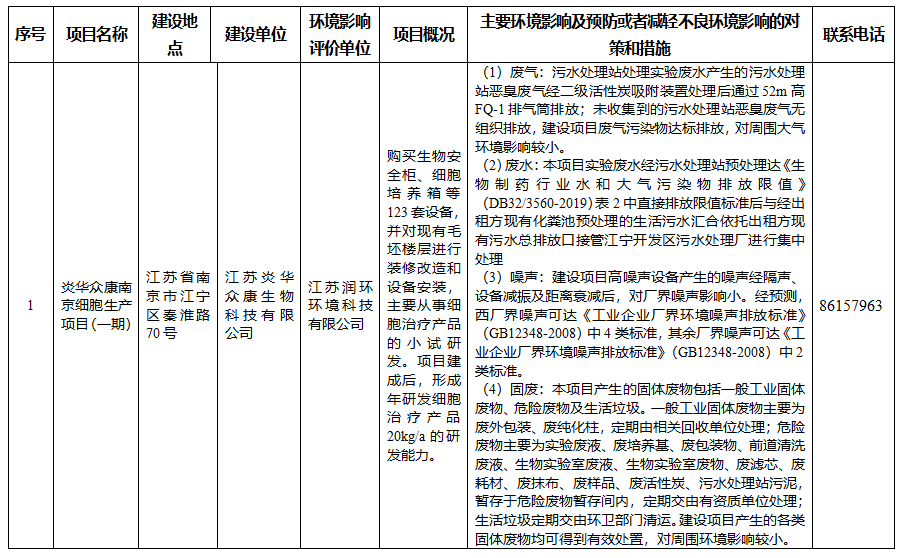 信息名称: | 江宁开发区政务服务中心关于江苏炎华众康生物科技有限公司炎华众康南京细胞生产项目(一期)环境影响评价文件拟进行审查公示 | ||