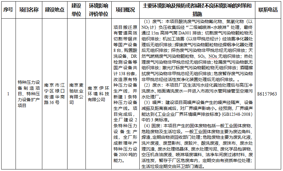 信息名称: | 江宁开发区政务服务中心关于南京麦驰钛业有限公司特种压力设备制造项目、特种压力设备扩产项目环境影响评价文件拟进行审查公示 | ||