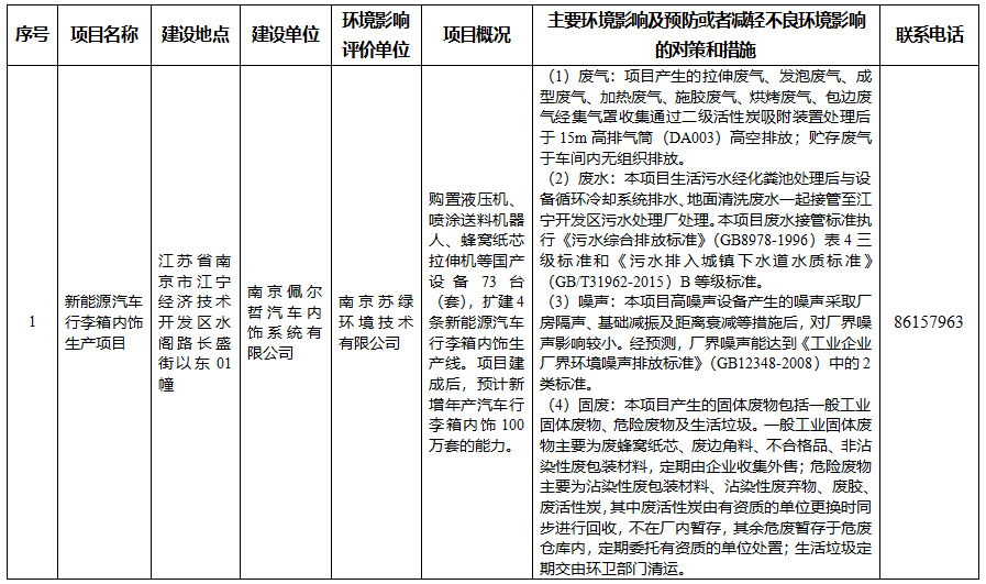 信息名称: | 江宁开发区政务服务中心关于南京佩尔哲汽车内饰系统有限公司新能源汽车行李箱内饰生产项目环境影响评价文件拟进行审查公示 | ||