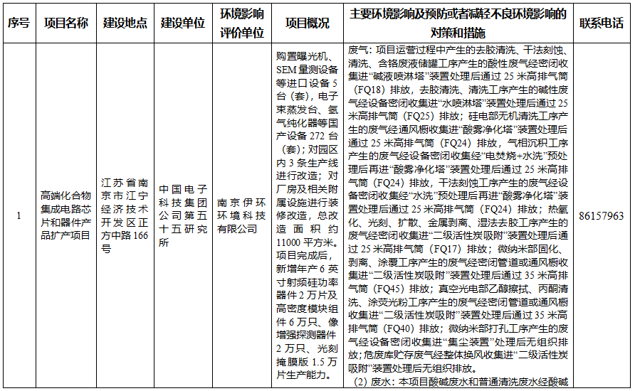 信息名称: | 江宁开发区政务服务中心关于中国电子科技集团公司第五十五研究所高端化合物集成电路芯片和器件产品扩产项目环境影响评价文件拟进行审查公示 | ||