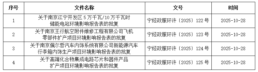 江宁开发区政务服务中心关于2025年10月27日-2025年10月31日作出的建设项目环境影响评价文件审批决定的公告