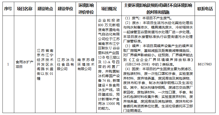 | 信息名称: | 江宁开发区政务服务中心关于江苏冰马仕食品有限公司食用冰扩产项目环境影响评价文件拟进行审查公示 | ||