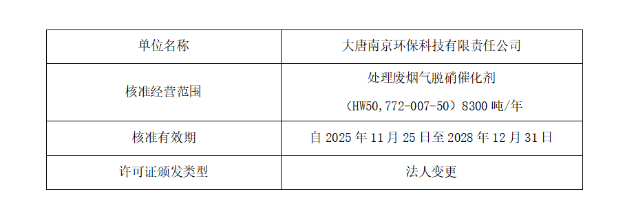 | 信息名称: | 危险废物经营许可证颁发公告 | ||