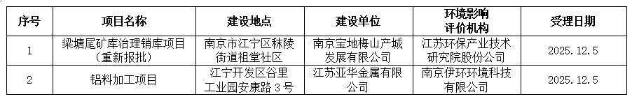 | 信息名称: | 江宁开发区政务服务中心关于2025年12月5日建设项目环境影响评价文件受理情况的公示 | ||