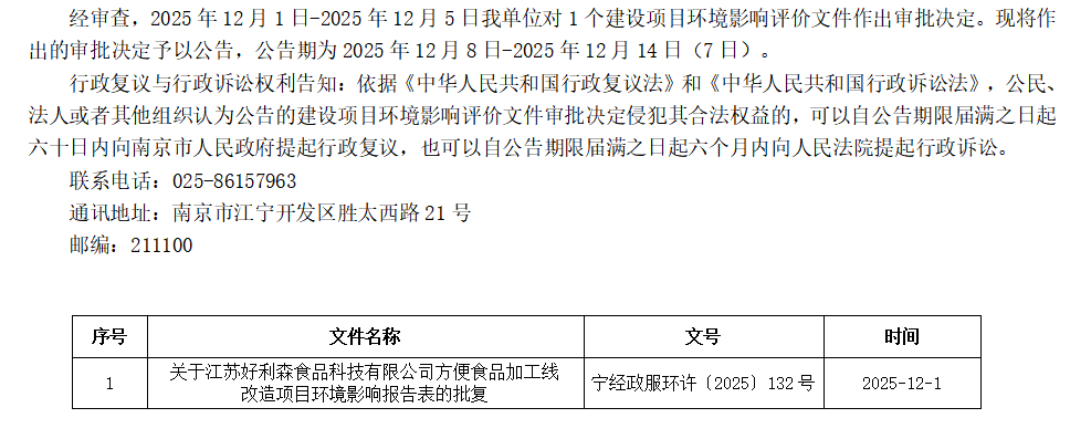 | 信息名称: | 江宁开发区政务服务中心关于2025年12月1日-2025年12月5日作出的建设项目环境影响评价文件审批决定的公告 | ||
