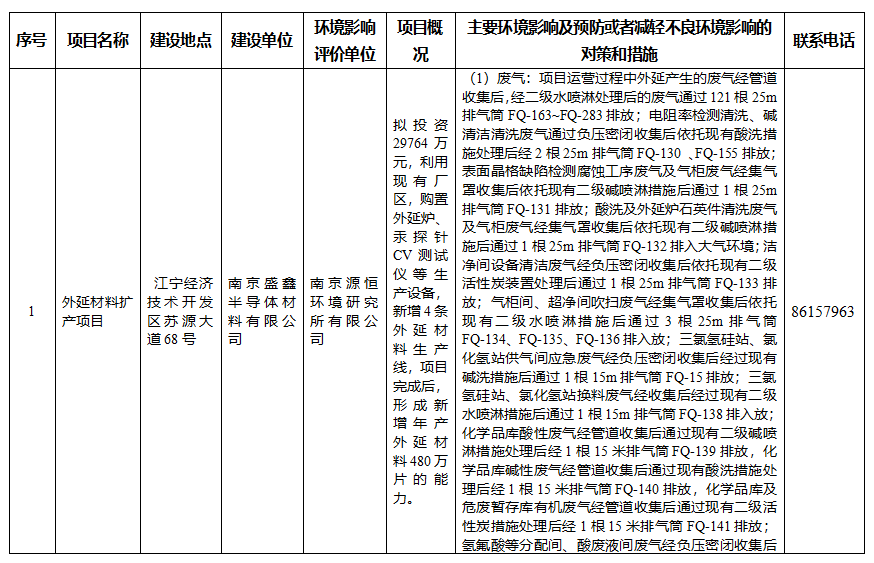 | 信息名称: | 江宁开发区政务服务中心关于南京盛鑫半导体材料有限公司外延材料扩产项目环境影响评价文件拟进行审查公示 | ||