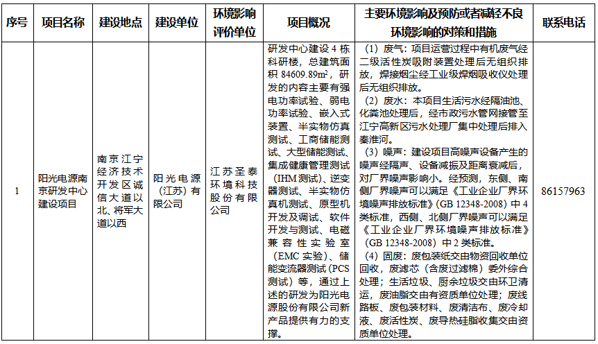 | 信息名称: | 江宁开发区政务服务中心关于阳光电源(江苏)有限公司阳光电源南京研发中心建设项目环境影响评价文件拟进行审查公示 | ||