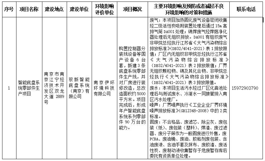 | 信息名称: | 江宁开发区政务服务中心关于驭新智能底盘系统(南京)有限公司智能底盘系统零部件生产项目环境影响评价文件拟进行审查公示 | ||
