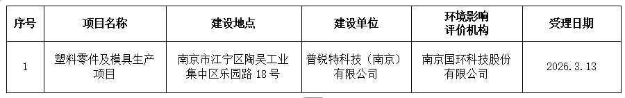 | 信息名称: | 江宁开发区政务服务中心关于2026年3月13日建设项目环境影响评价文件受理情况的公示 | ||