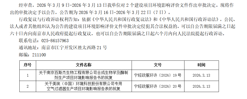 | 信息名称: | 江宁开发区政务服务中心关于2026年3月9日-2026年3月13日作出的建设项目 环境影响评价文件审批决定的公告 | ||
