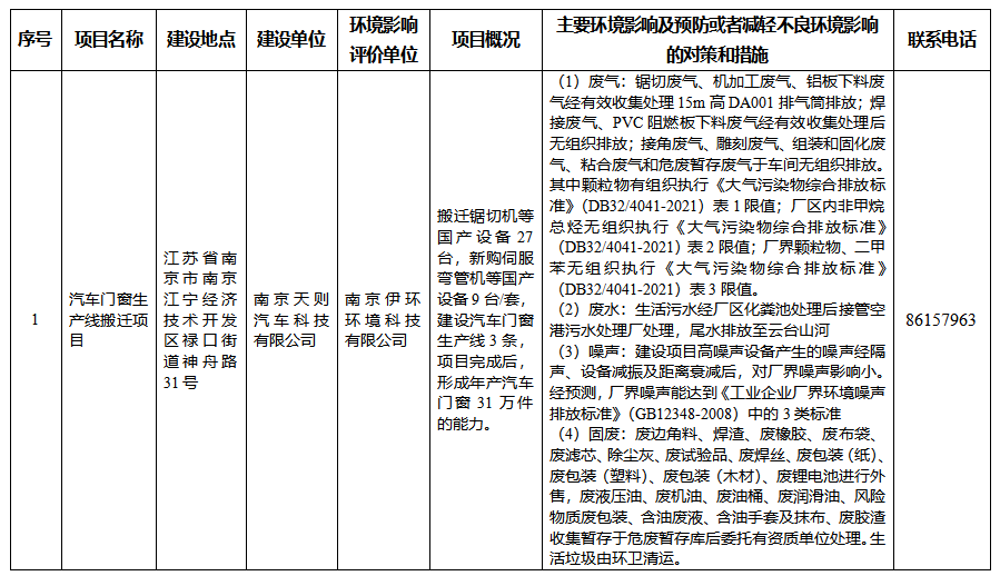 | 信息名称: | 江宁开发区政务服务中心关于南京天则汽车科技有限公司汽车门窗生产线搬迁项目环境影响评价文件拟进行审查公示 | ||