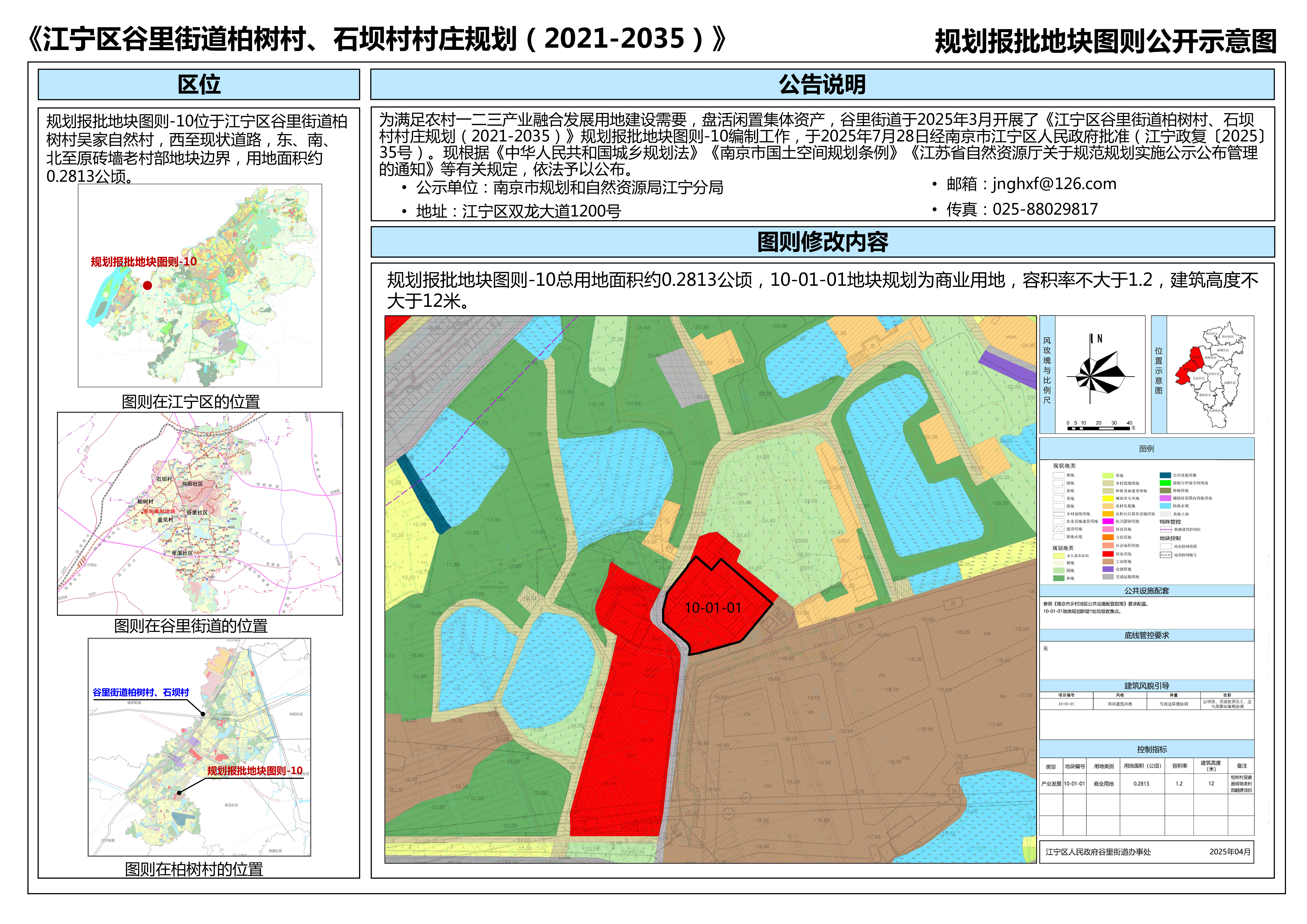 | 信息名称: | 南京市江宁区谷里街道柏树村、石坝村村庄规划(2021-2035)规划报批地块图则 | ||