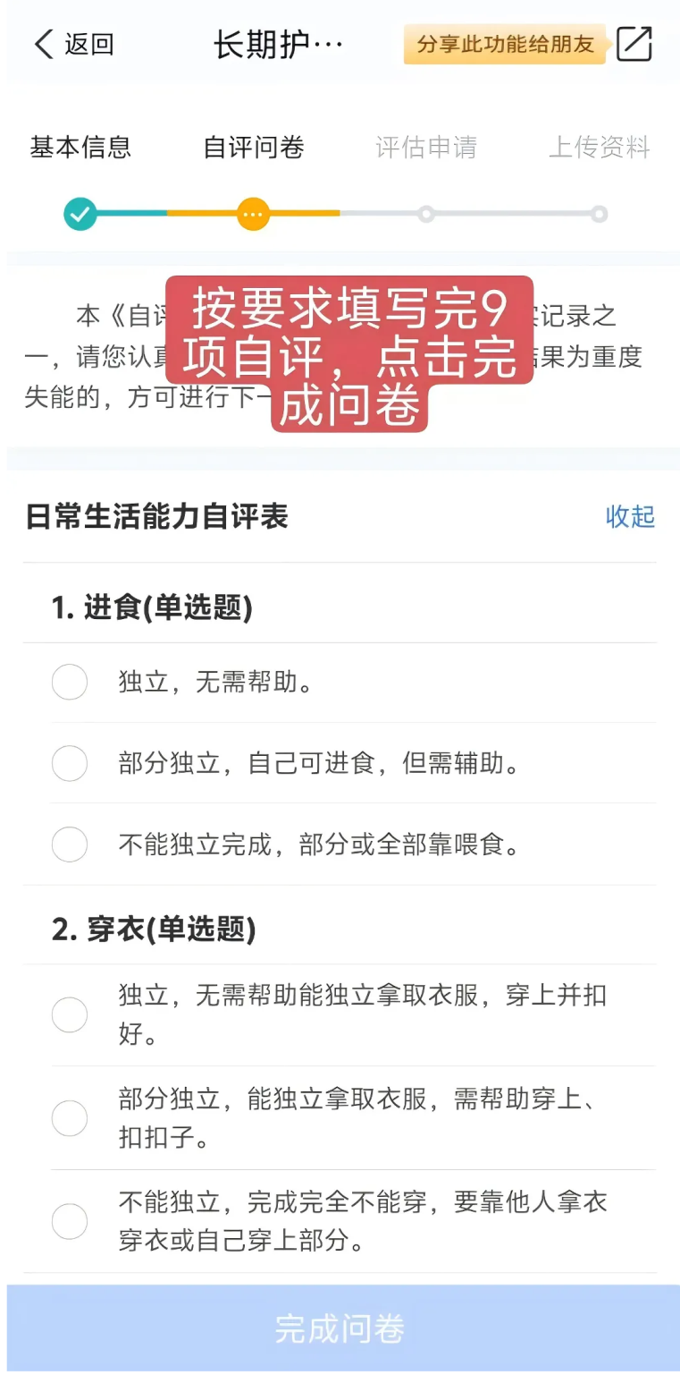 步骤二:填写完成自评问卷。