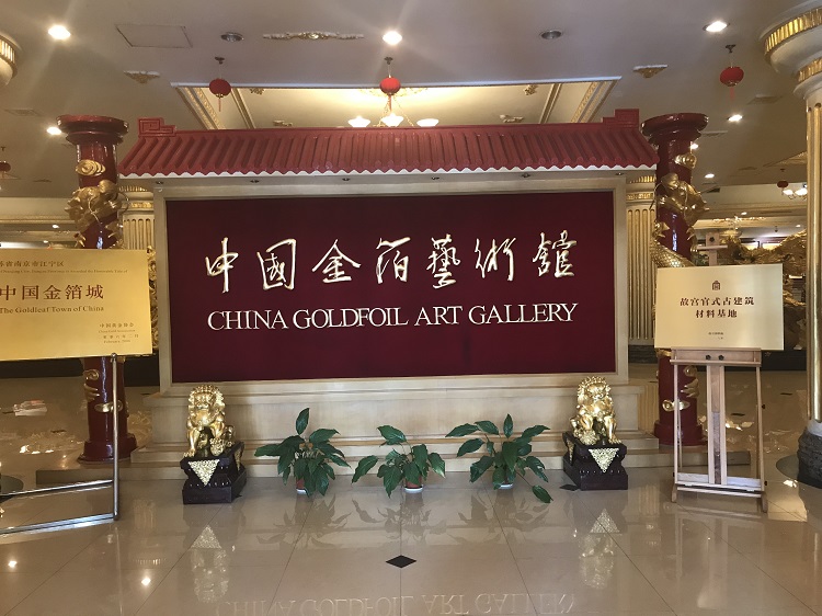 由南京金箔集团公司投资6000万兴建,展览大厅面积2000平方米,分8个展区:南京金箔的起源、金箔业发展史、金箔生产工艺、金箔用途、金箔文化、金箔精神、金箔业的未来趋向等,展出金箔艺术品包括金箔工艺品如“金卡”、“金箔画”、“金箔书”、去毒、养颜、护肤的金箔化妆品、金箔酒,以及金字招牌、各种金墙纸、金瓷砖、金马赛克、金瓦等等共3000多件,从一个侧面体现着世界金箔业的现状和发展方向。